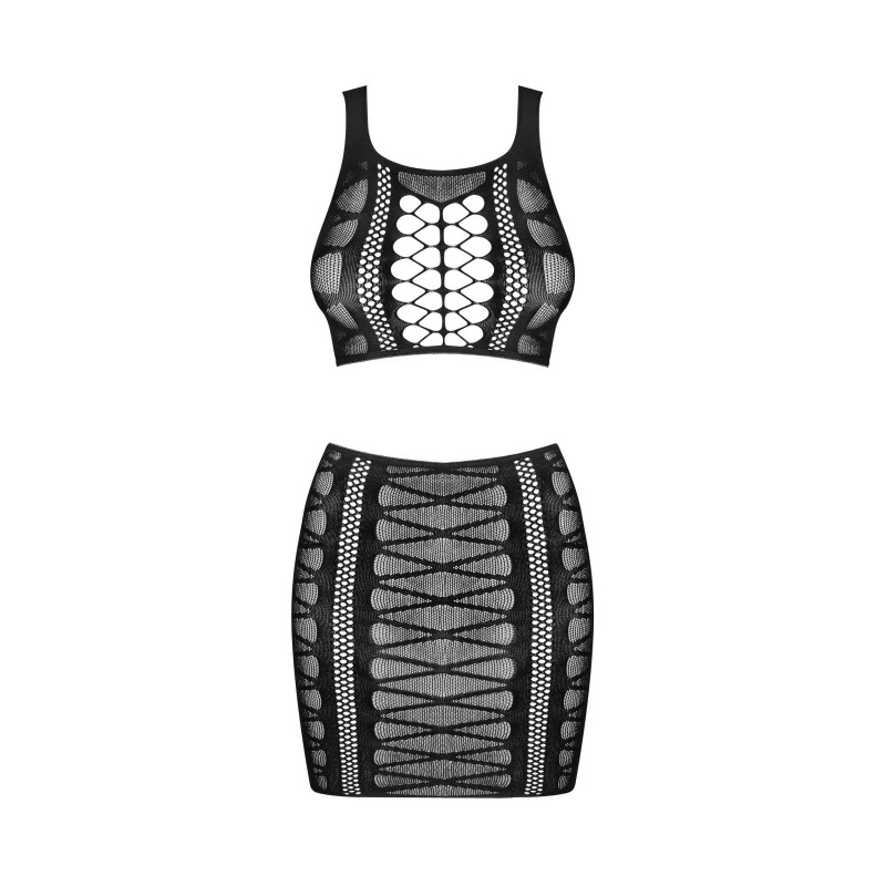 Soyez audacieux et amusez-vous un peu dans votre vie ! Vous vous sentirez divine lorsque vous enfilerez cette jupe et ce haut phénoménaux. Des tissus combinés de manière tentante éveilleront vos sens, augmenteront la chaleur dans la chambre et donneront à votre corps un aspect absolument magnifique. N’hésitez pas !