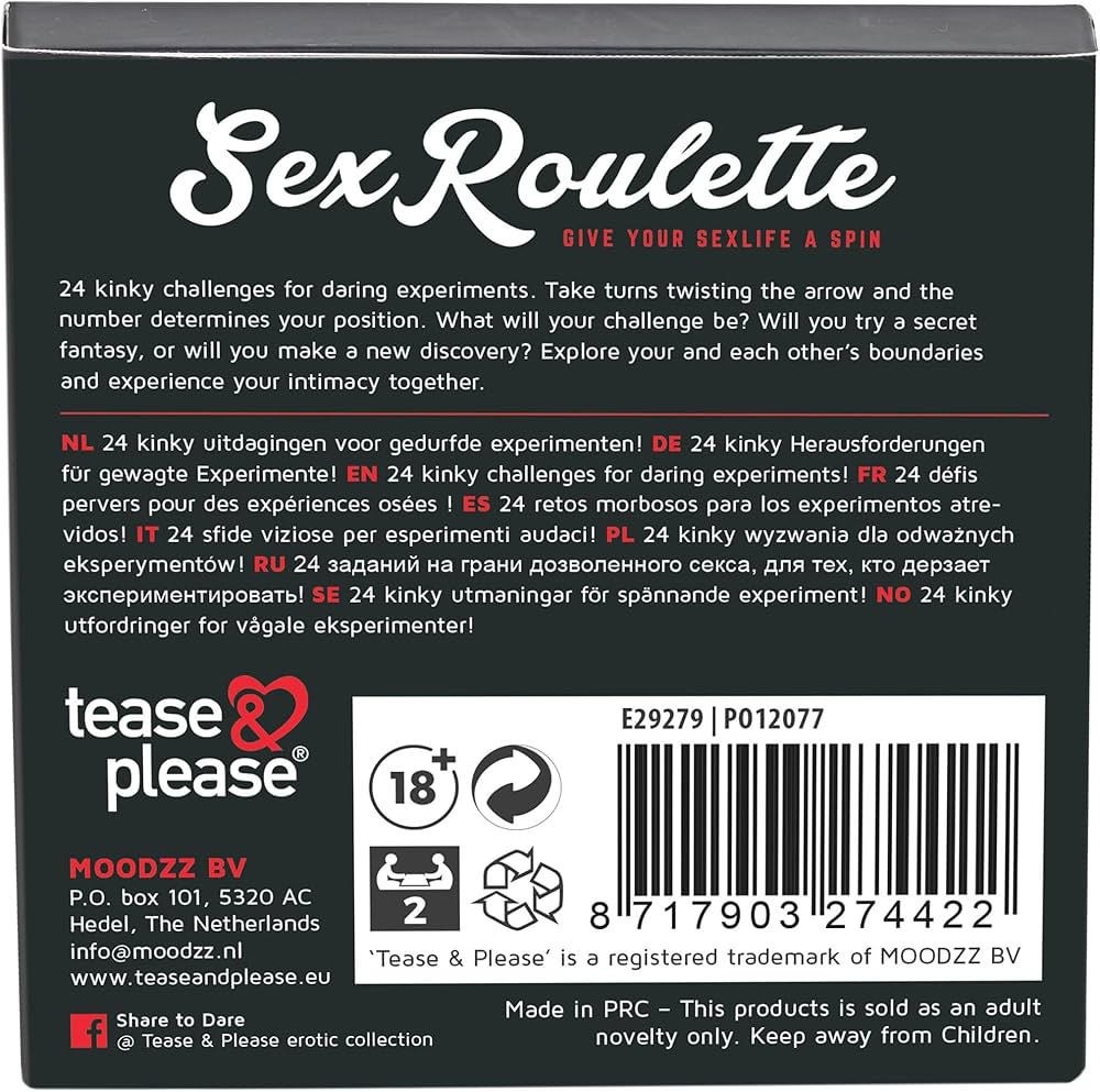 À chaque tour de roue, un numéro est tiré au sort et correspond à un challenge à retrouver dans le livret multilingue 10 langues. Ce jeu stimule l’expérimentation, l’excitation et la complicité en explorant des pratiques plus coquines ou taboues, dans le respect du consentement mutuel.